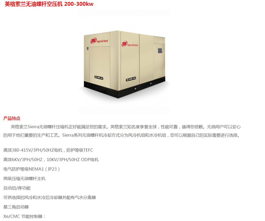 英格索蘭無(wú)油螺桿空壓機(jī)200-300KW