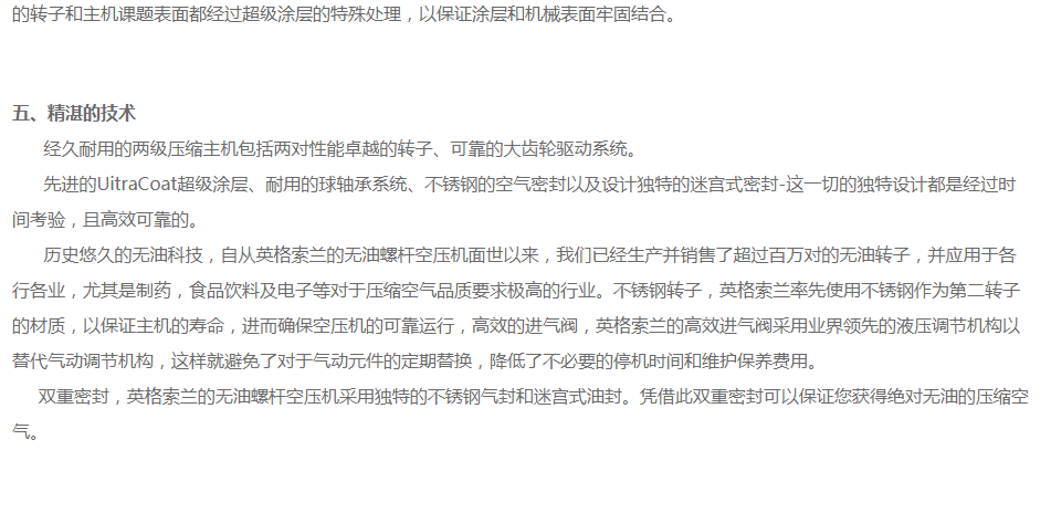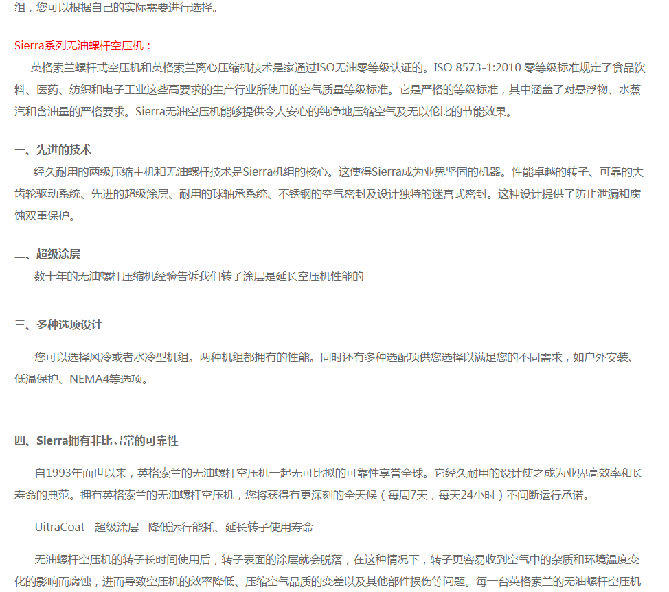 英格索蘭無(wú)油螺桿空壓機(jī)sierra系列